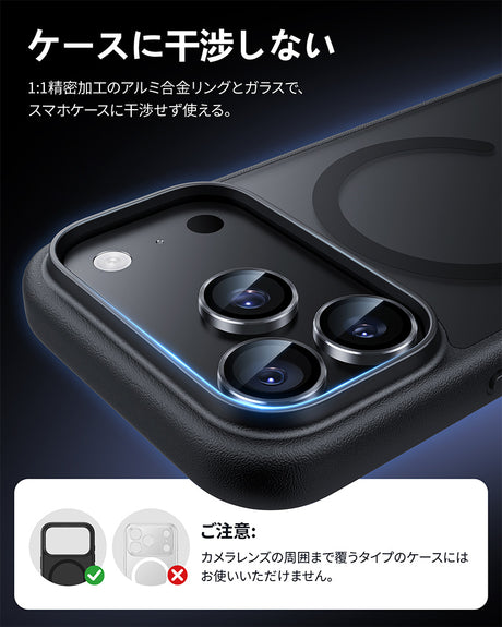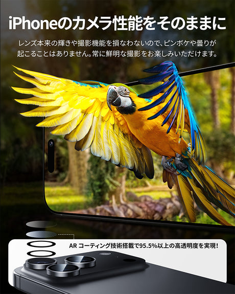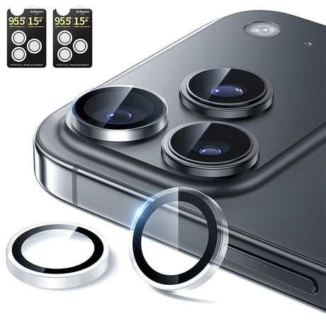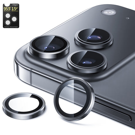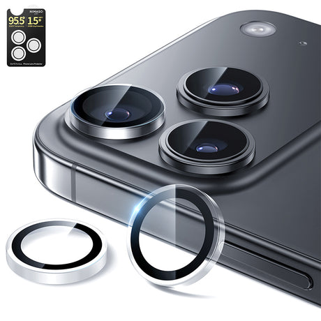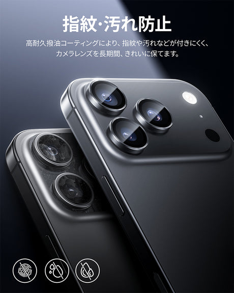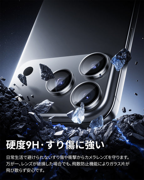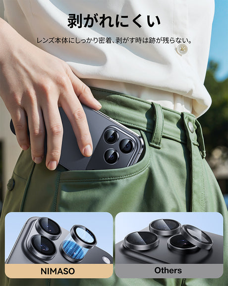 NIMASO iPhone 17/17 Pro/Pro Max/Air用 カメラフィルム アルミ合金+9H強化ガラス 全面保護 黒縁取り 耐衝撃 ガイド枠付き