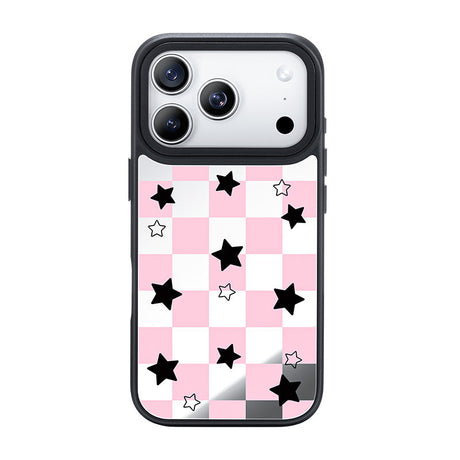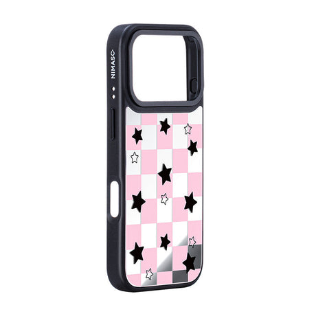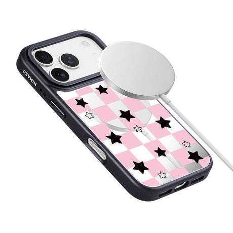 NIMASO iPhone 17/Pro/Pro Max用 ケース MagSafe対応 可愛い ミラー おしゃれ 耐衝撃 ワイヤレス充電対応(ファンシーシリーズ)チェッカー柄 ピンク