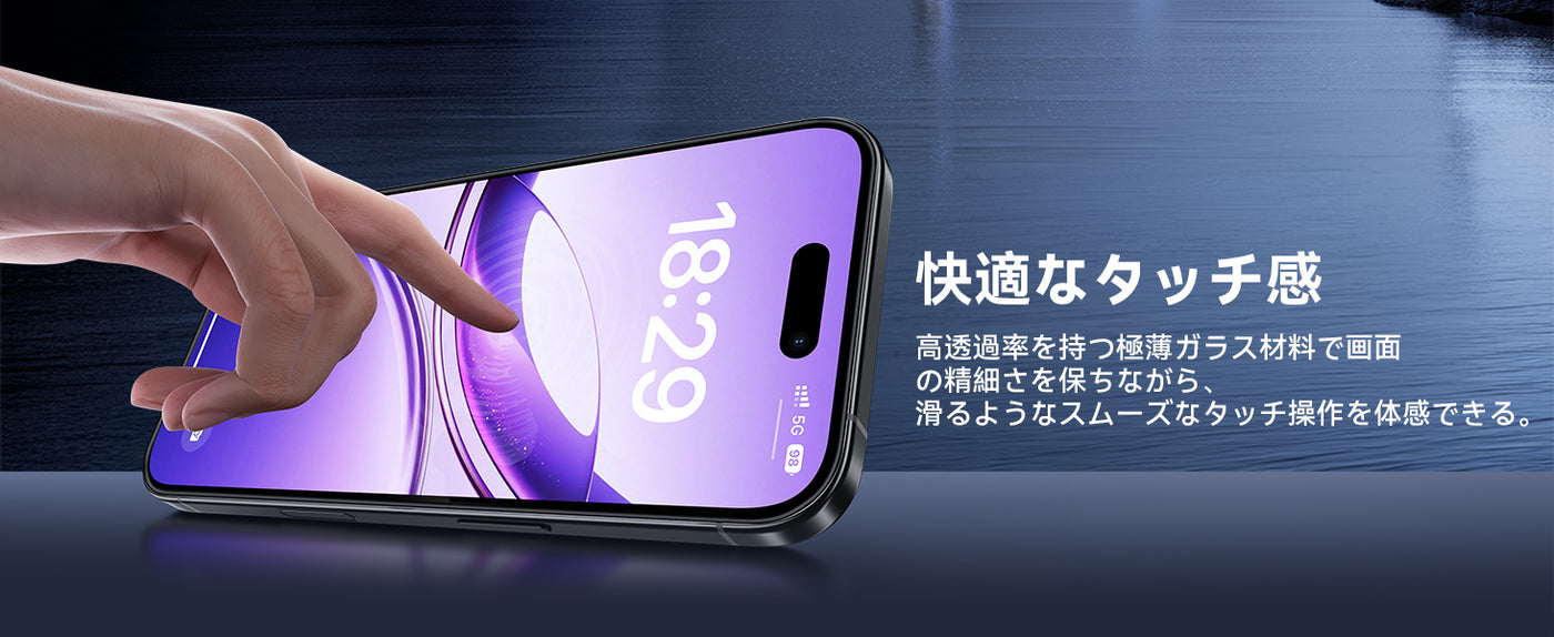 - 【指紋防止・滑らかな触り心地】本製品は撥水撥油のAF(Anti-Fingerprint)コーディング加工とスムースタッチ加工により、指紋や汚れがつきにくく、油分や水分が強く付着した汚れや指紋がついても、拭き取るだけで綺麗になります。また、使用時の手触りも滑らかで、毎日の動画視聴や仕事、勉強、ゲームなどの邪魔になりません。常に美しい画面をお楽しみいただけます。