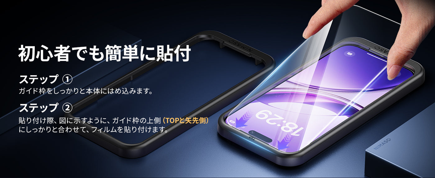 NIMASO iPhone 17/iPhone Air用 ガラスフィルム (2枚) + カメラフィルム (2枚) 硬度9H 耐衝撃 ガイド枠付き - iPhone 17 ...は取り寄せ中で入荷次第発送します。
