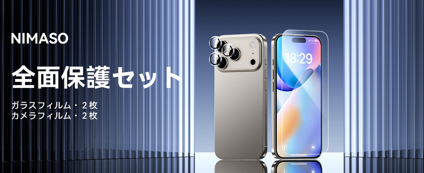 - 【超お得な4枚組み合わせセット】NIMASOの人気フィルムから、画面用とレンズ用の【お得な4枚セット】がおすすめ!強化ガラスフィルムとカメラレンズ保護フィルムが2枚ずつ。貼り付け時のズレも気にならず、大切ないPhone 17の画面とカメラをしっかりガードします!