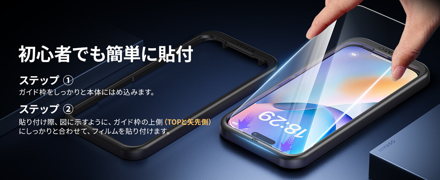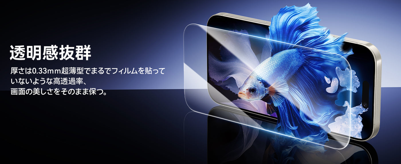 - 【対応機種】iPhone 17/17 Pro/17 Pro Max用ガラスフィルム*ご注意:カメラレンズの周囲まで覆うタイプのケースにはお使いいただけません。