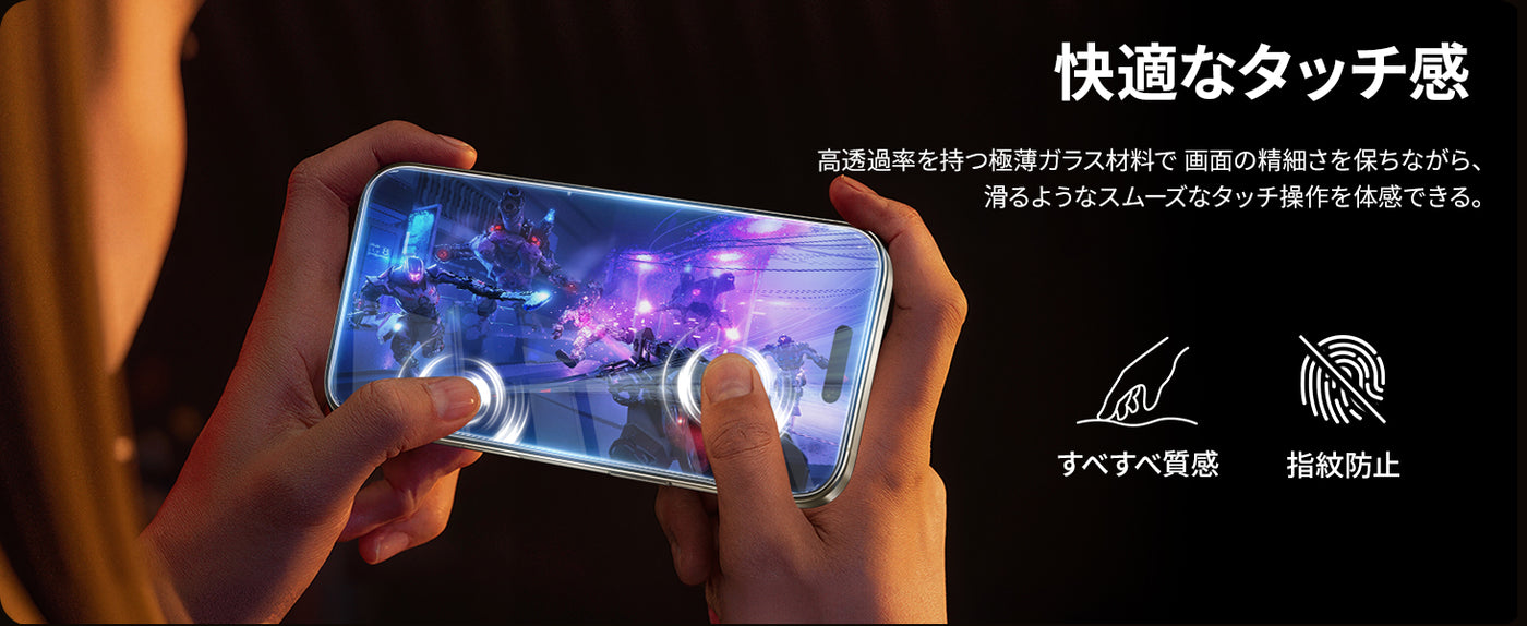 - 【指紋防止・滑らかな触り心地】本製品は撥水撥油のAF(Anti-Fingerprint)コーディング加工とスムースタッチ加工により、指紋や汚れがつきにくく、油分や水分が強く付着した汚れや指紋がついても、拭き取るだけで綺麗になります。また、使用時の手触りも滑らかで、毎日の動画視聴や仕事、勉強、ゲームなどの邪魔になりません。常に美しい画面をお楽しみいただけます。