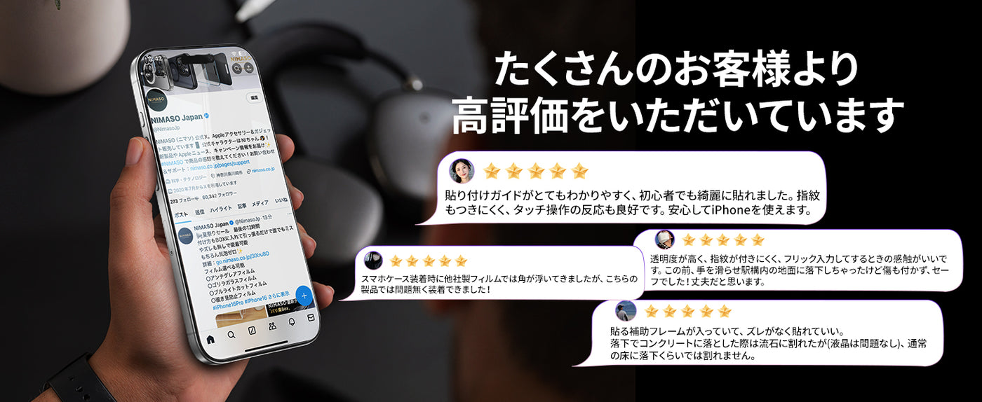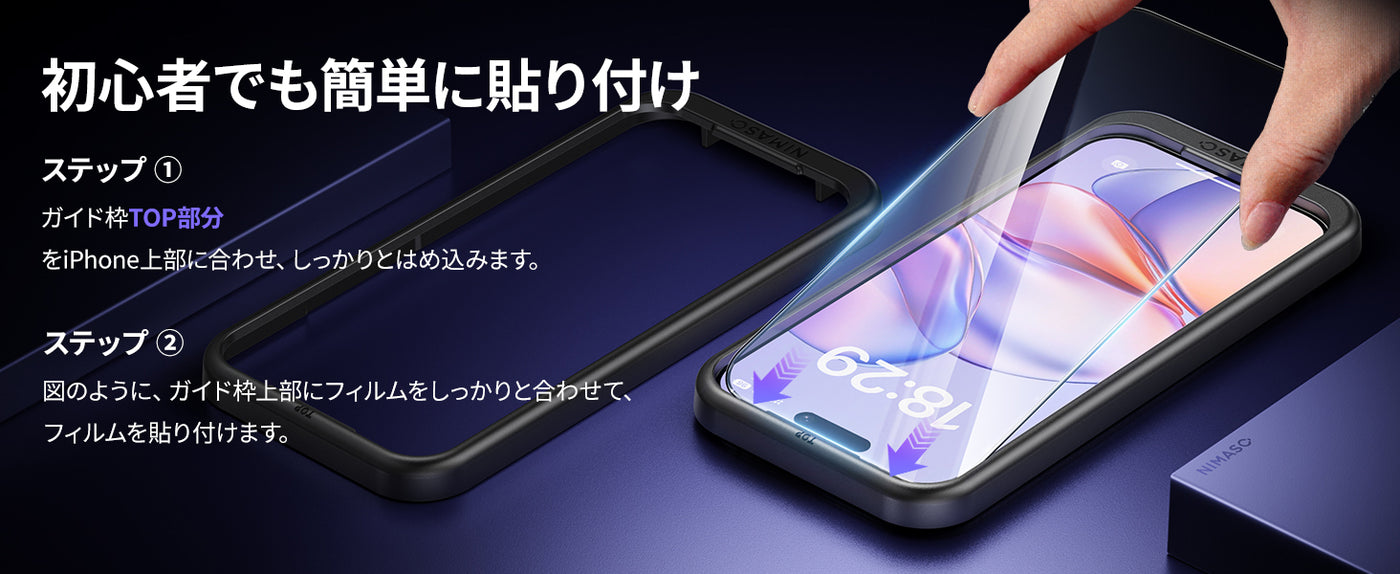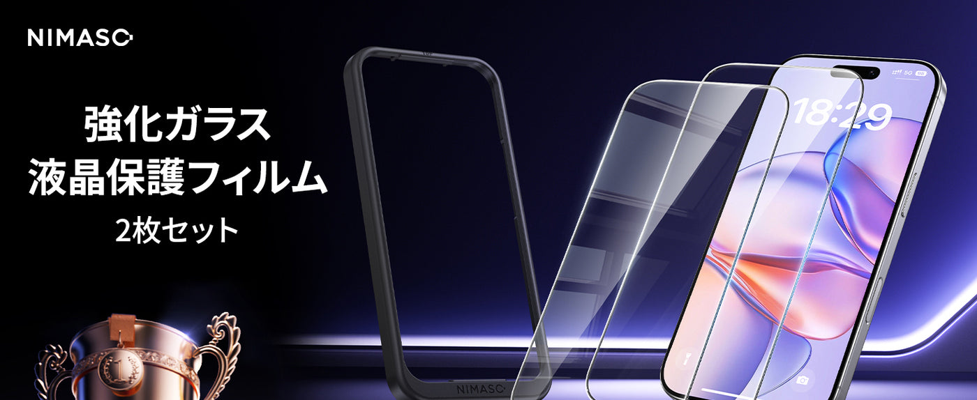 NIMASO iPhone 17/Pro/Pro Max/Air用 強化ガラスフィルム 黒縁あり 全面保護 耐衝撃 ガイド枠付き【2枚】 - iPhone 17 ...は取り寄せ中で入荷次第発送します。