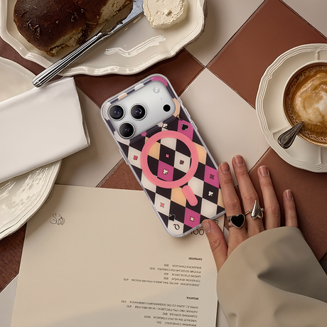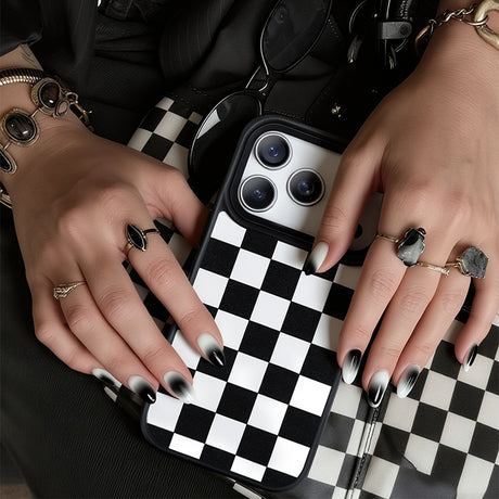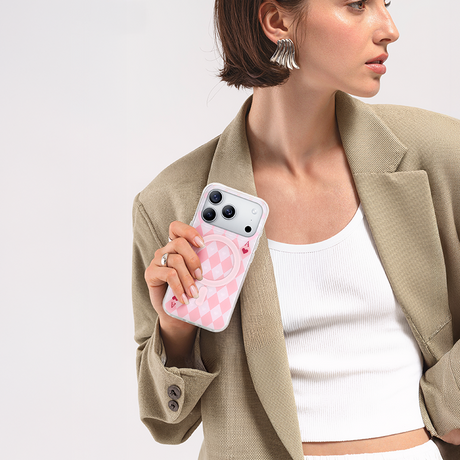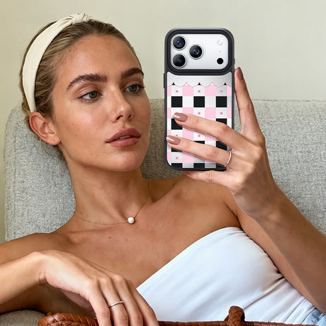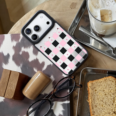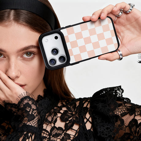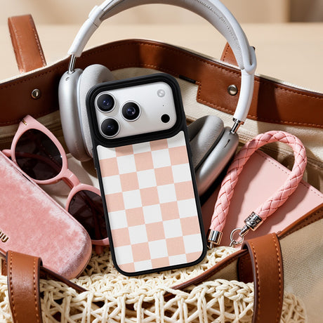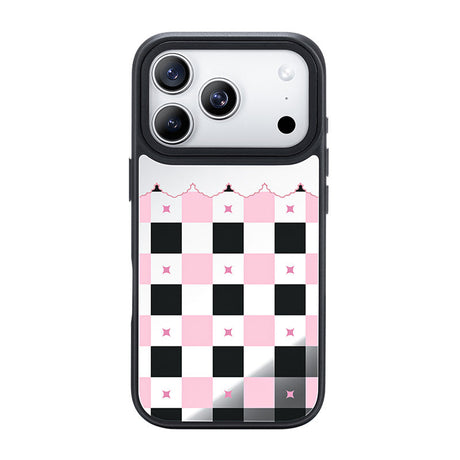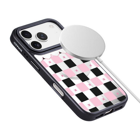 NIMASO iPhone 17/Pro/Pro Max/Air用 ケース MagSafe対応 可愛い おしゃれ 傷付き防止 スマホケース(チェッカーシリーズ)白黒・白粉のチェック柄
