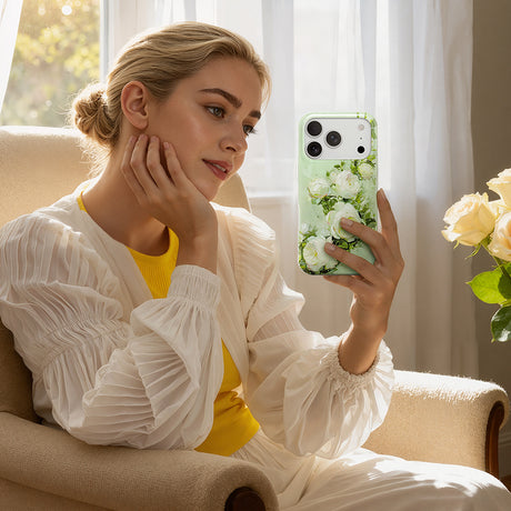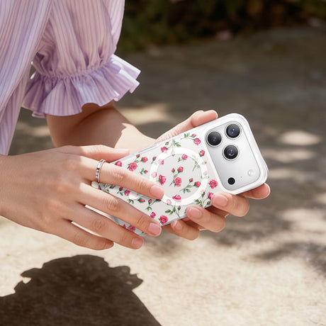 NIMASO iPhone 17/Pro/Pro Max/Air用 ケース MagSafe対応 かわいい おしゃれ スマホケース (フローラルシリーズ)赤いバラ