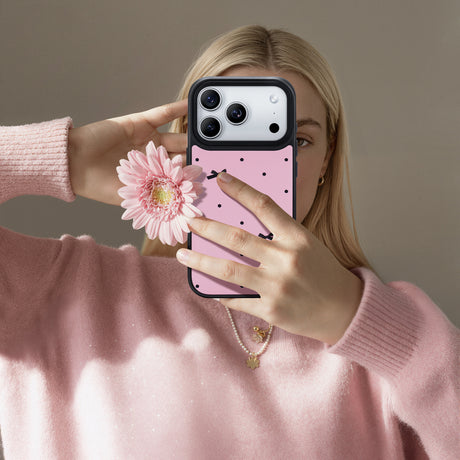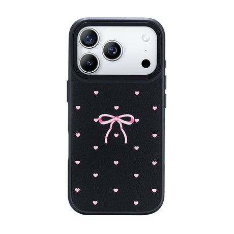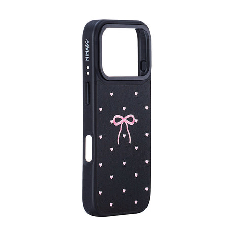 NIMASO iPhone 17/Pro/Pro Max/Air用 ケース MagSafe対応 かわいい おしゃれ 耐衝撃 ワイヤレス充電対応(ファンシーシリーズ)リボン柄 ブラック