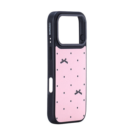 NIMASO iPhone 17/Pro/Pro Max/Air用 ケース MagSafe対応 可愛い おしゃれ 耐衝撃 ワイヤレス充電対応(ファンシーシリーズ)リボン柄 ピンク