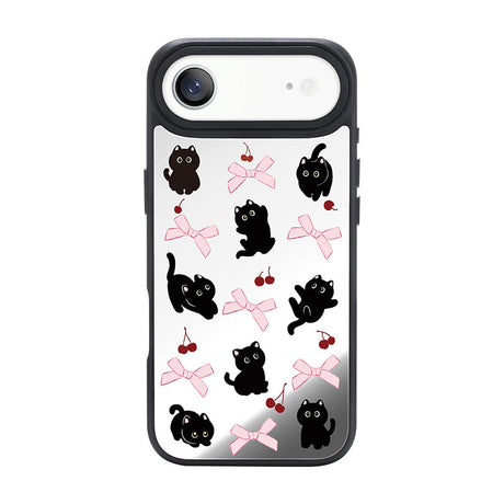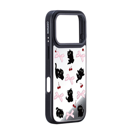 NIMASO iPhone 17/Pro/Pro Max/Air用 ケース MagSafe対応 ミラー かわいい おしゃれ 耐衝撃 ワイヤレス充電対応(ファンシーシリーズ)ブラックキャット