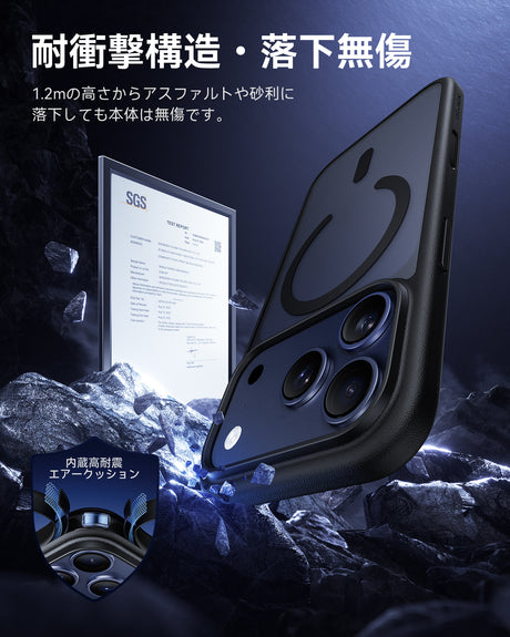 NIMASO iPhone 17/Pro/Pro Max/Air用ケース MagSafe対応 耐衝撃 ワイヤレス充電 カメラコントロールカバー(黒羽シリーズ)