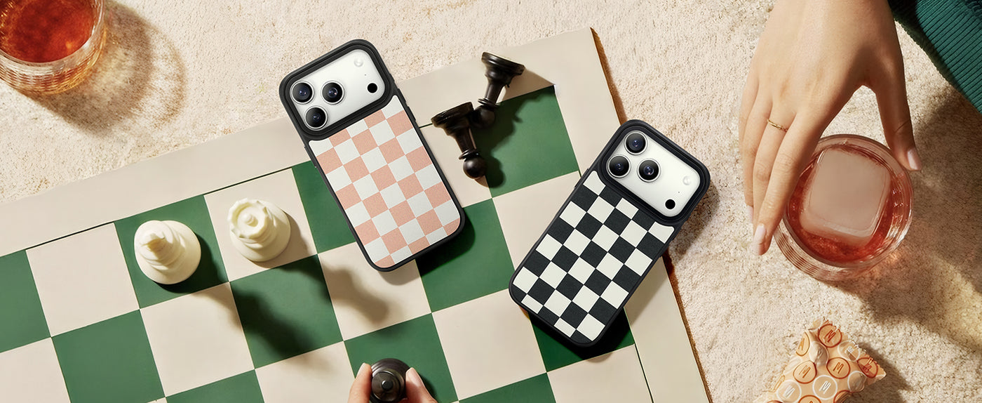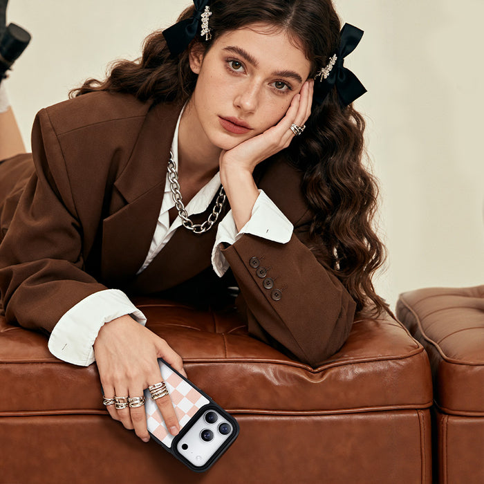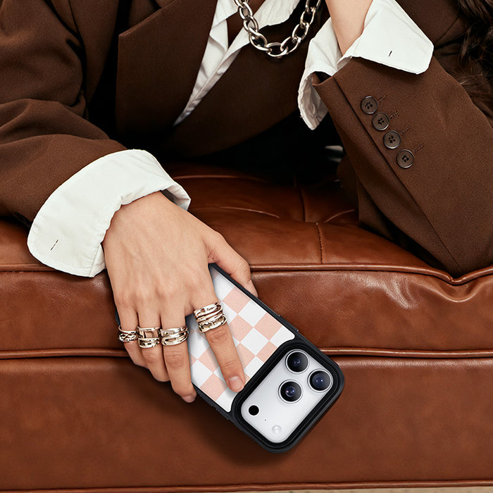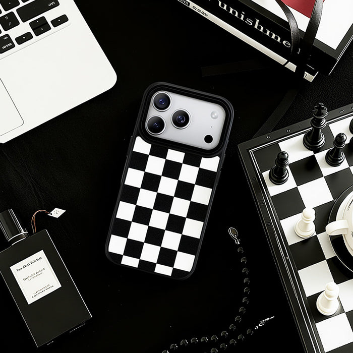 NIMASO iPhone 17/Pro/Pro Max/Air用 ケース MagSafe対応 可愛い おしゃれ 傷付き防止 スマホケース(チェッカーシリーズ)白黒・白粉のチェック柄