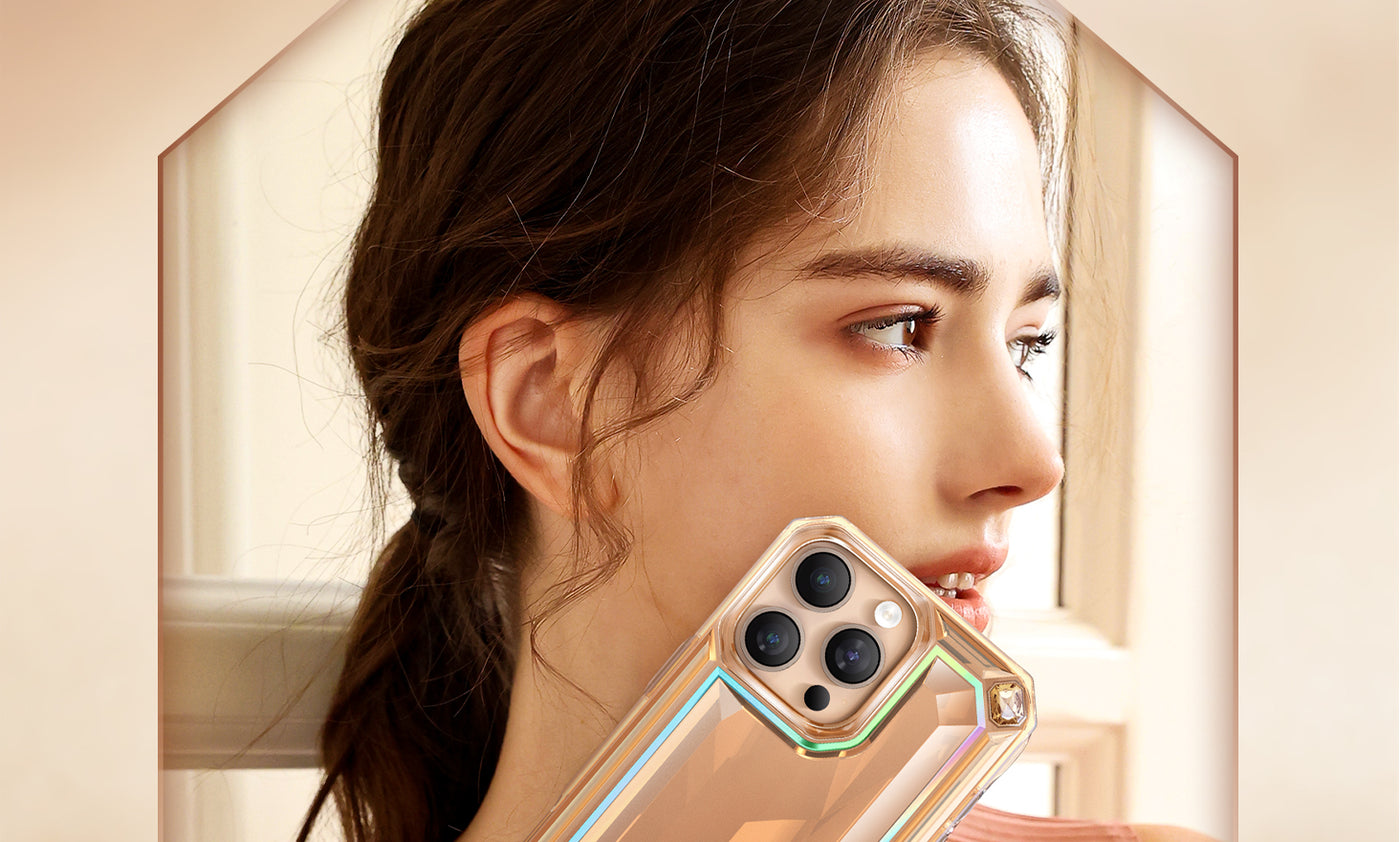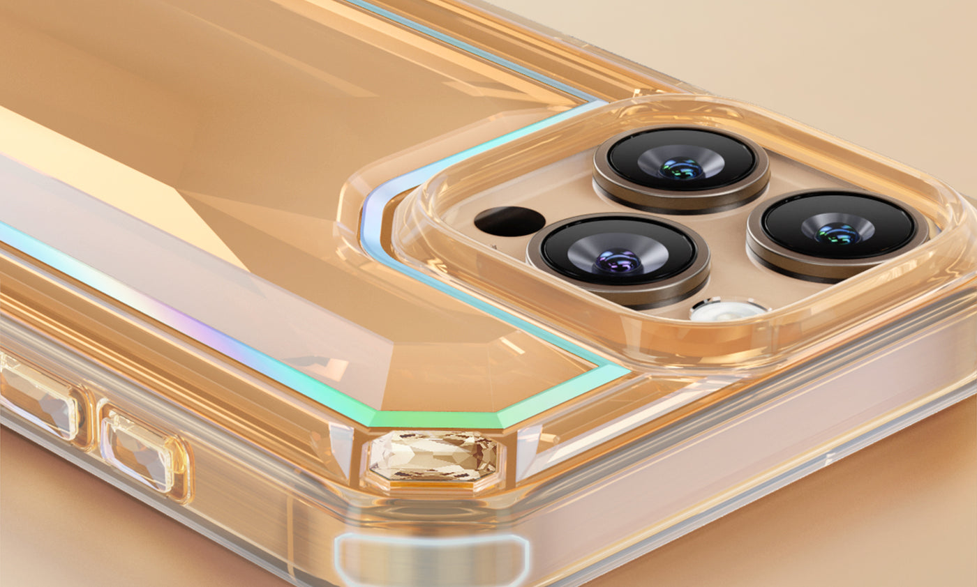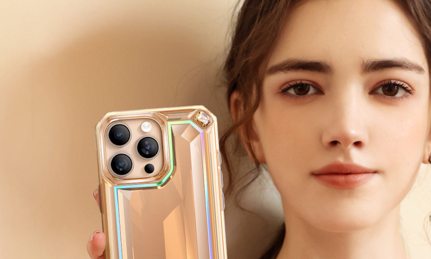 NIMASO iPhone 16/Pro/Pro Max用ケース ダイヤモンド 高級感 耐衝撃 サンセットゴールド