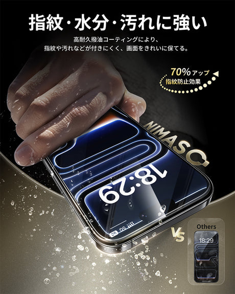 NIMASO iPhone 17/Pro/Pro Max/Air用 2in1 アンチグレア+覗き見防止 強化ガラスフィルム 耐衝撃 ガイド枠付き 【1枚】