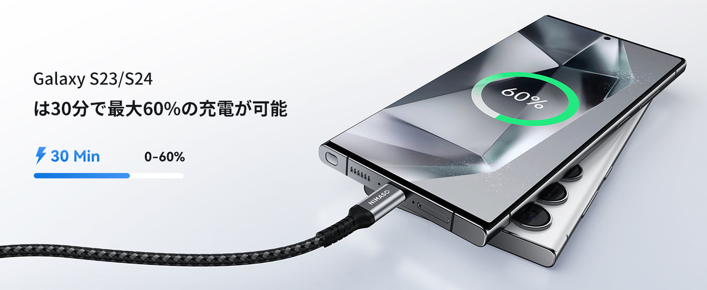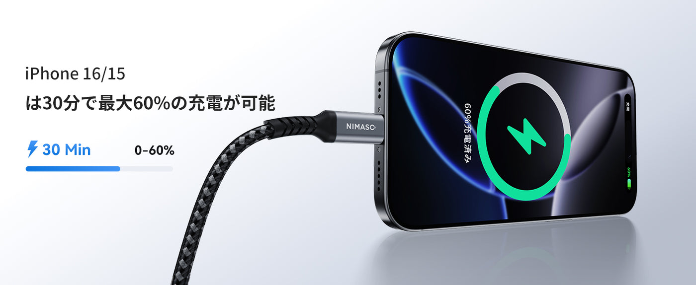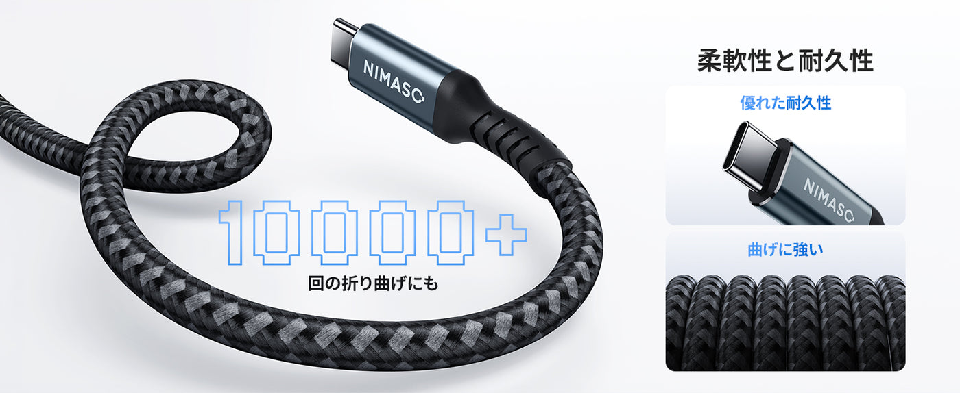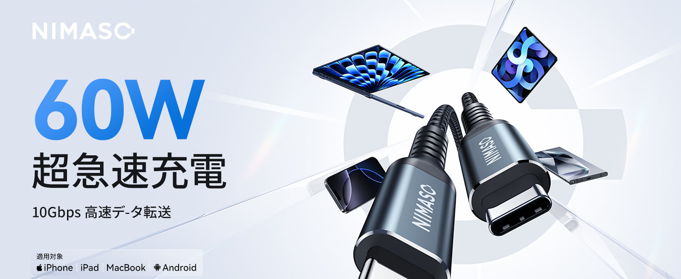 NIMASO PD対応 60W急速充電 C to C ケーブル