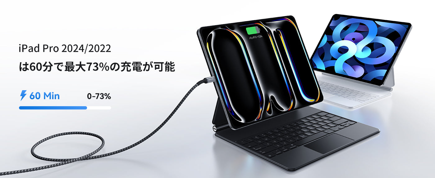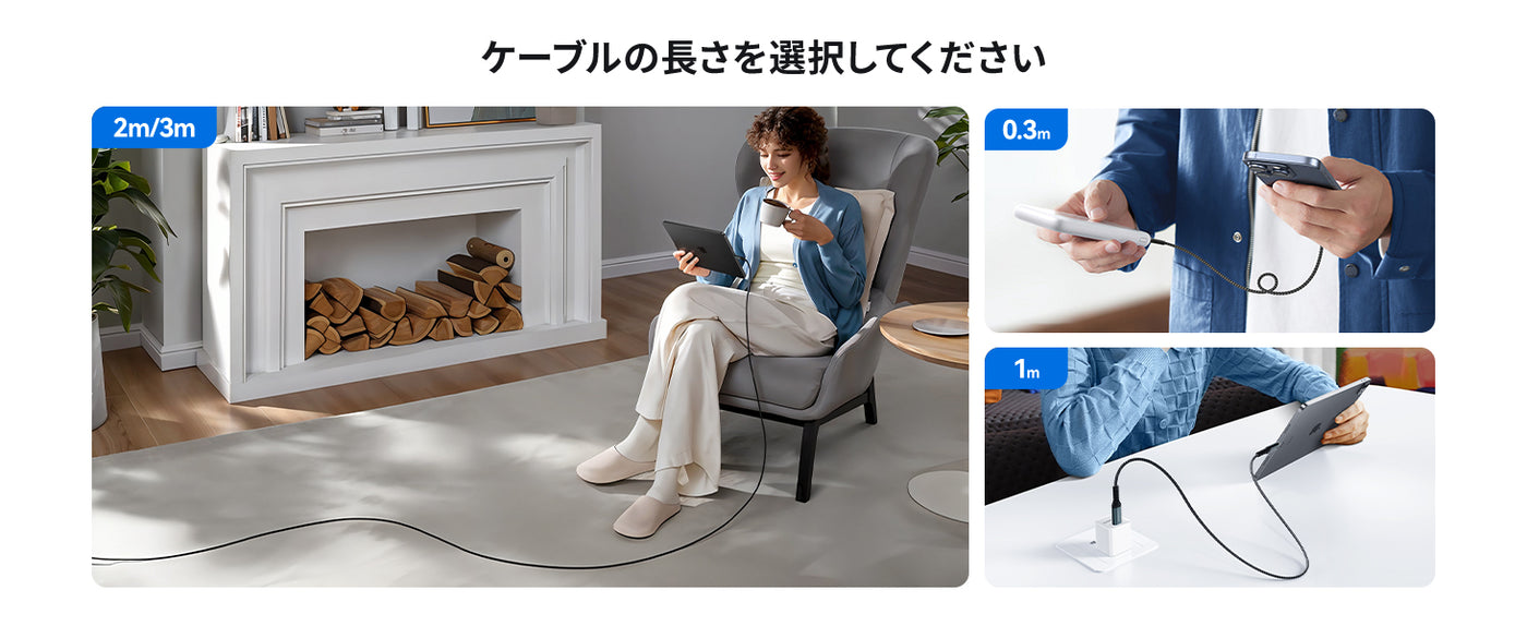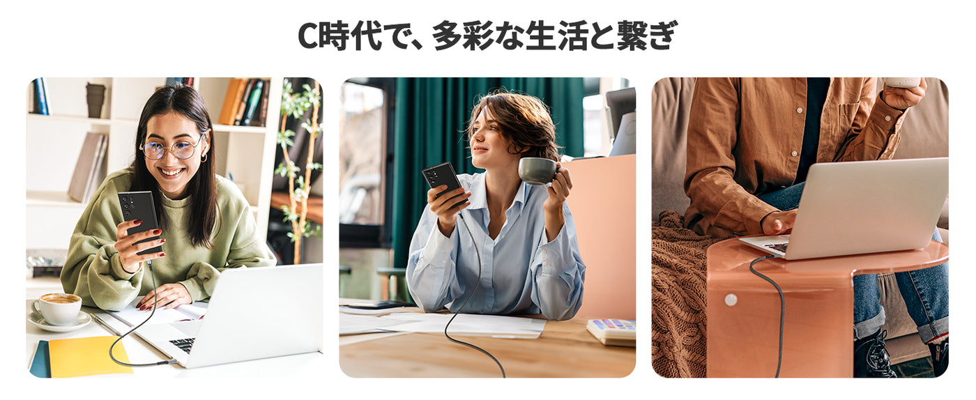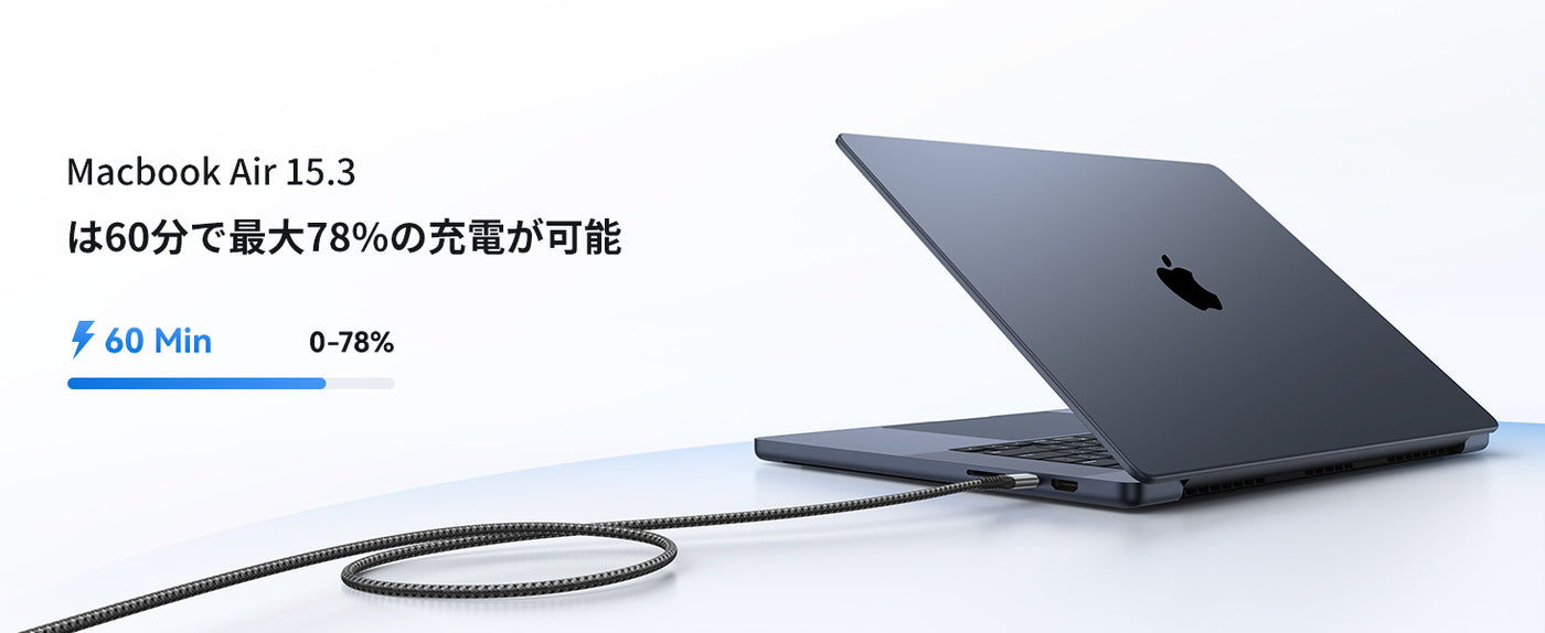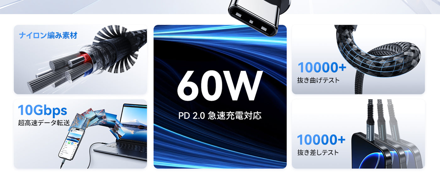 【最大60Wの高速充電対応】このusb-c ケーブルはUSB PD(Power-Delivery)対応により、最大60Wの高速充電を対応可能。スマホだけでなく充電に時間のかかる各種タブレット、PCなどの充電時間を大幅に短縮できます。▲充電器と接続する機器がPD対応している場合に限ります。