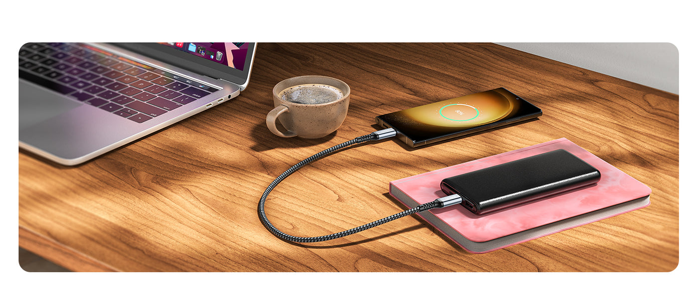 【USB C to USB C ケーブル】USB-Cポート付きのデバイス(スマホ、タブレット)をUSB-Cポート付きのデバイス(パソコン、チャージャー、モバイルバッテリー)に接続するケーブルです。収納に便利な結束バンドをお付けします。