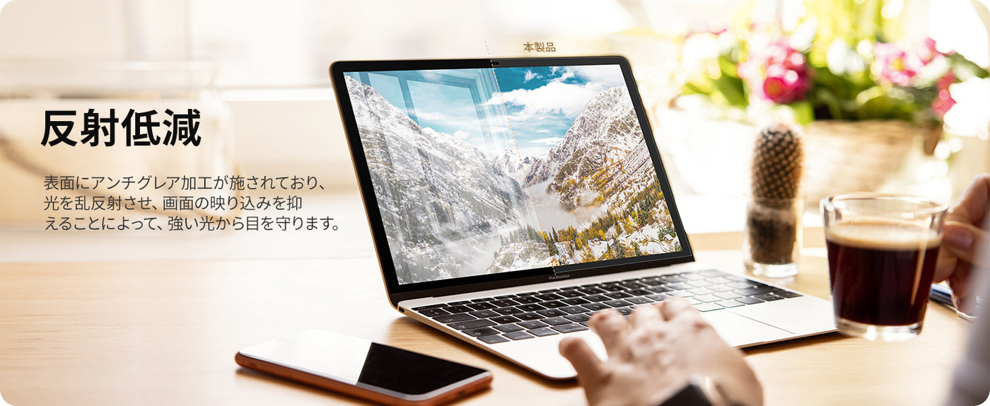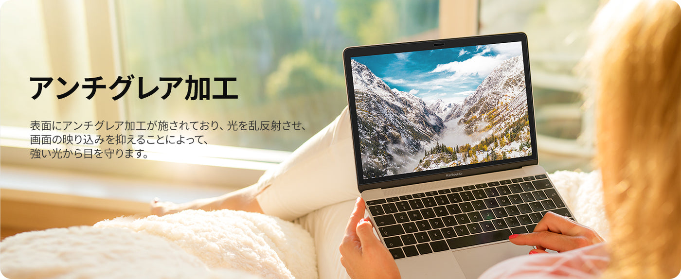 - 【アンチグレア機能】本製品はアンチグレア加工が施されており、蛍光灯や日差し等による反射を有効的に押さえ、どこでも画面をしっかりと見えます。