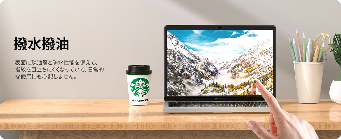 - 【指紋防止】表面にあるアンチグレア及び撥油コーティングによって、指紋が付きにくくなる上、付いたところで、あっさりと拭きとれます。