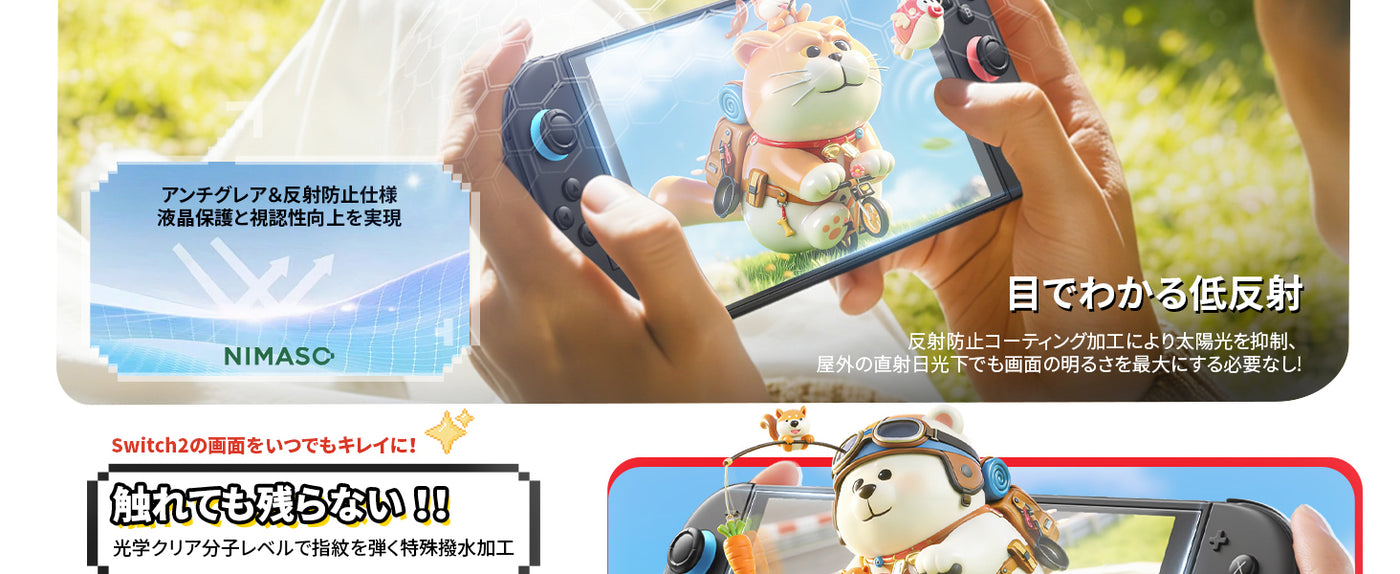 持ち運び時の擦れや、バッグ内での接触による細かな傷から Switch 2 の画面を保護します。