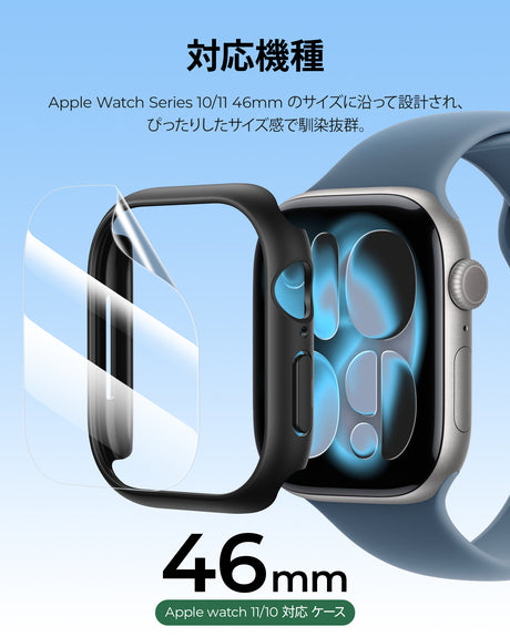 NIMASO Apple Watch Series 11/10/9/8/7 42/45/46mm用保護カバー 保護フィルム付き【3枚組】軽量 側面衝撃防止 高感度タッチ 指紋防止 気泡レス