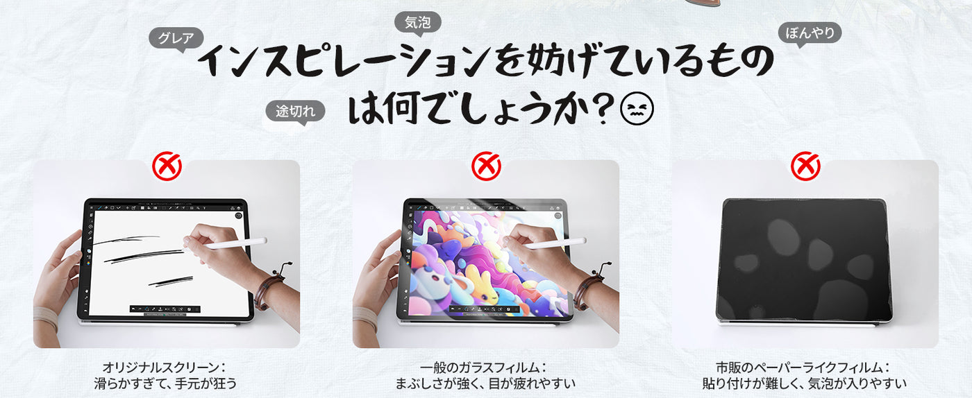 13インチの広い作業領域に最適化された、ペーパーライクフィルム iPad Pro 13インチ用。