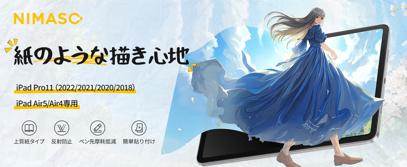 NIMASO ペーパーライクフィルム iPad Pro(第1/2/3/4世代 2022 M2)/iPad Air(第4/5世代)用 アンチグレア 反射低減 指紋防止 紙のような描き心地 位置決めガイド付き