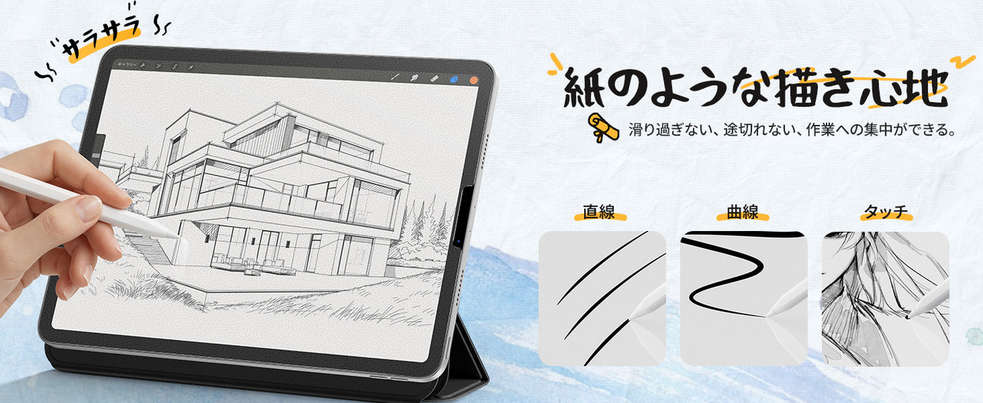 iPad ペーパーライク フィルム 書き心地 リアルで、手書き作業が楽しくなる仕上がりです。