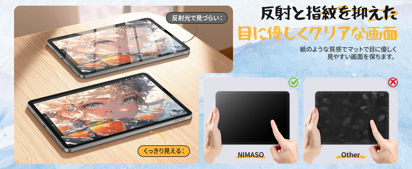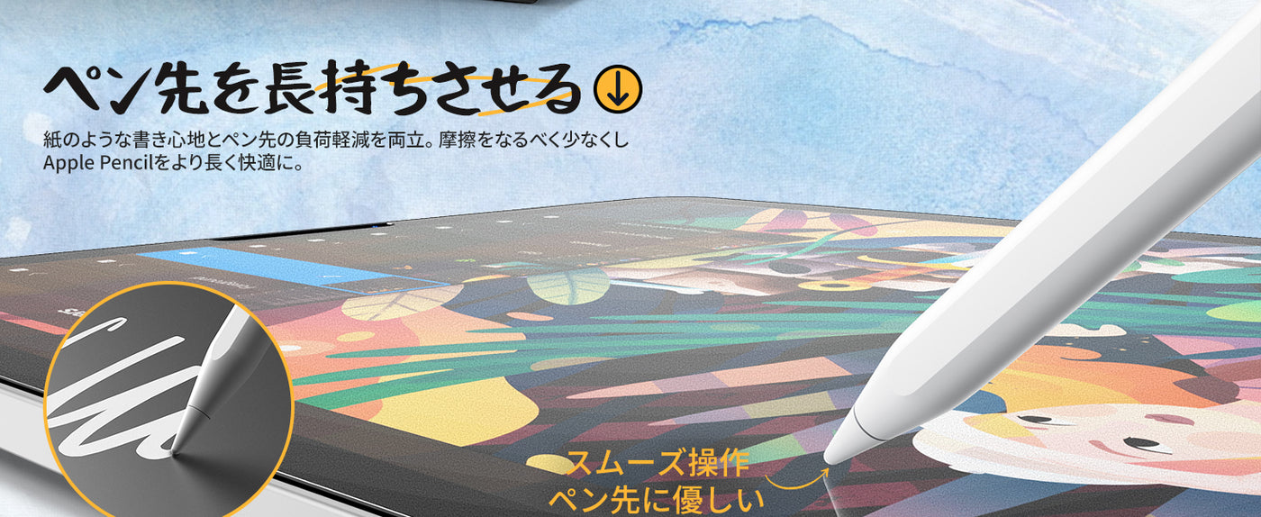 紙の描き心地、ペン先の摩耗低減、反射防止、指紋防止、貼り付け簡単