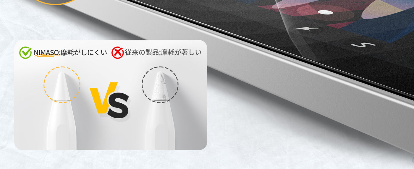 摩擦最適化により、Apple Pencil ペン先 摩耗防止 フィルムを実現。