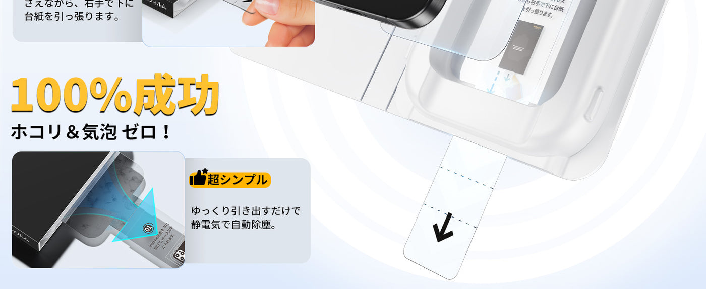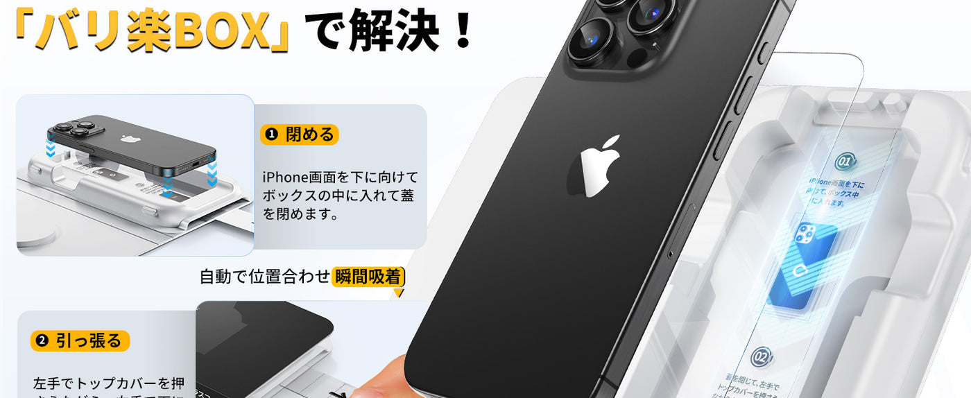 - [Automatic Dust Removal and No Air Bubbles] The Bariraku Box automatically removes dust and reduces static electricity when removing the adhesive surface protector. The adhesive surface is also designed to naturally adhere to the surface. This breaks the common belief that applying the film yourself can lead to problems like distortion, air bubbles, dust, and lifting, making it perfect for even an amateur.