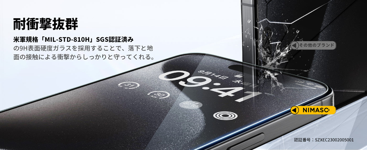- [US Military Standard - Scratch and Impact Resistant] Compliant with US military standard MIL-STD-810H (certification number: SZXEC23002005001). Features 9H surface hardness glass, making it scratch-resistant even when hit by sharp objects like knives or keys, providing reliable protection for your iPhone 15 screen. Shatterproof, it prevents glass shards from scattering even if the screen breaks.