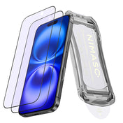NIMASO Blue Light Blocking Tempered Glass Screen Protector for iPhone 16/Pro/16 Pro Max, Reduces Eye Strain, Includes Black Bezel and Automatic Dust Removal Guide Frame (2 Screens)