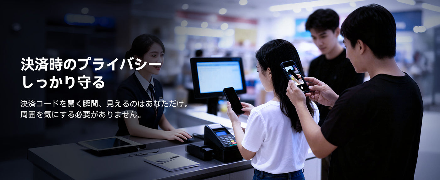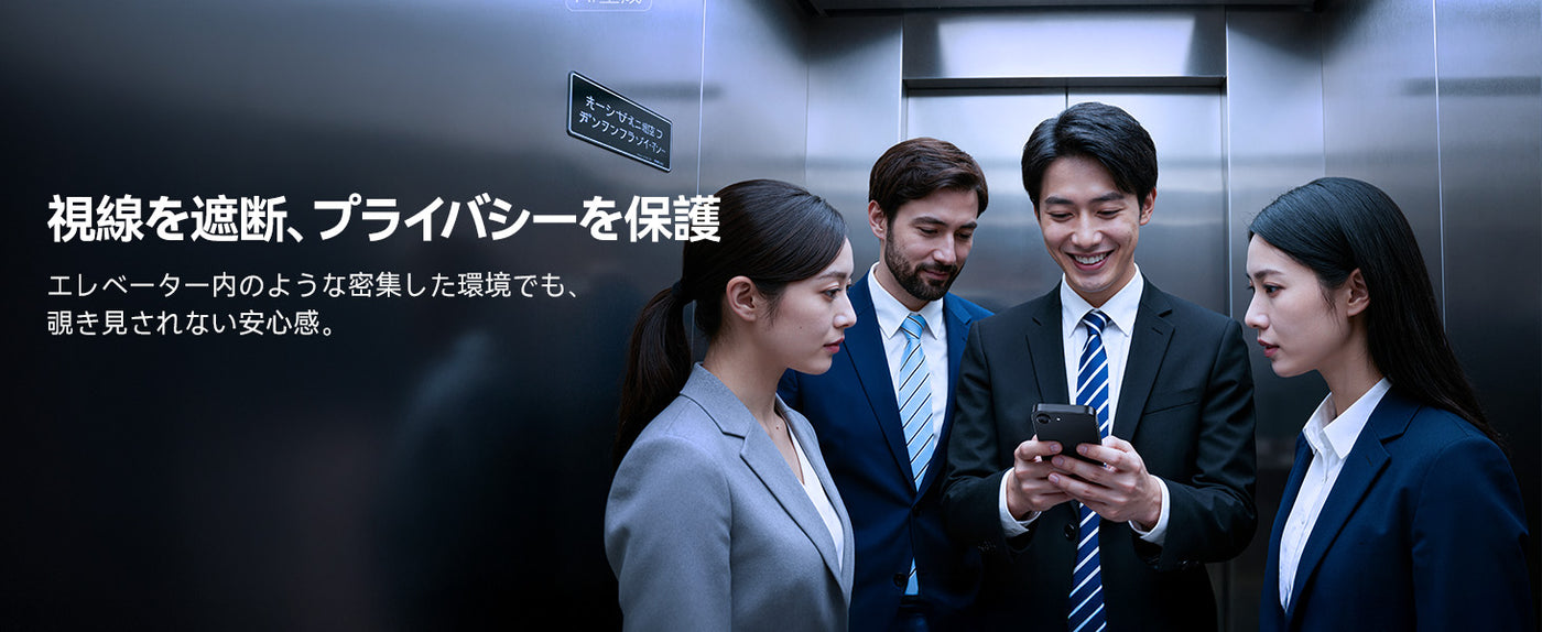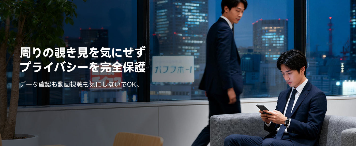 覗き見防止技術により、電車·バス等での移動中でも上下左右からの視線を防ぎます。周りを気にする必要はありません。