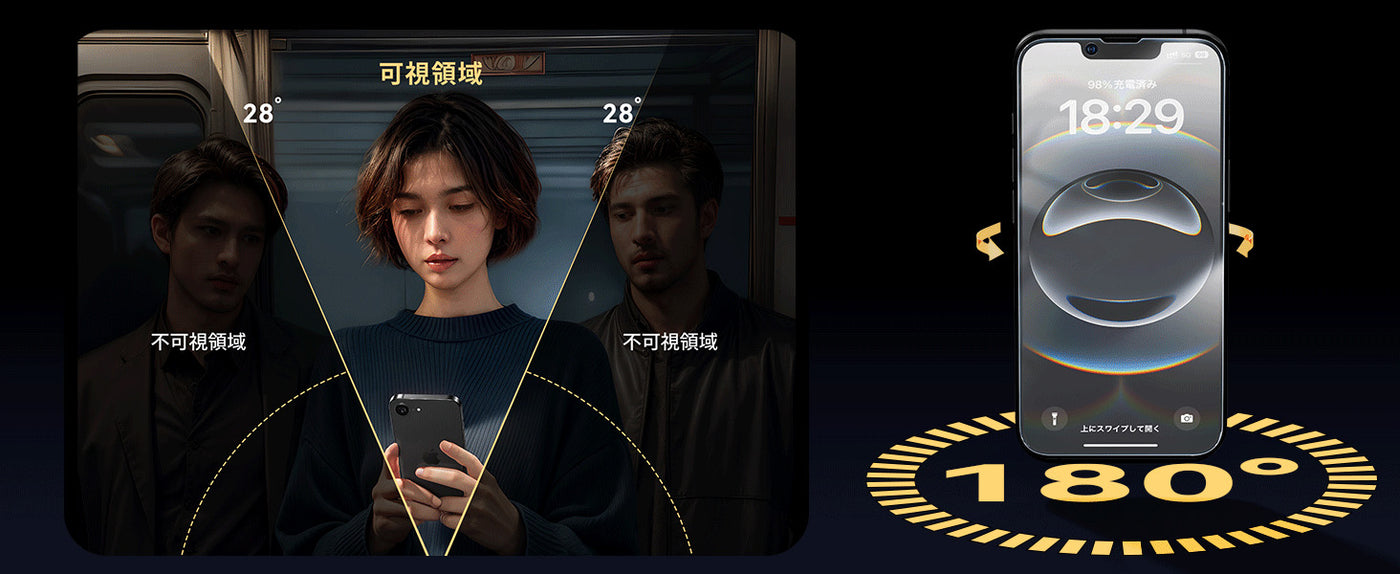 - [28° Privacy] Special blind coating prevents prying eyes from the sides when tilting your iPhone more than 28 degrees, protecting your privacy from both sides. It offers a clear, high-definition view from the front, ensuring Face ID authentication is uninterrupted. Enjoy your iPhone without restrictions, even in public.