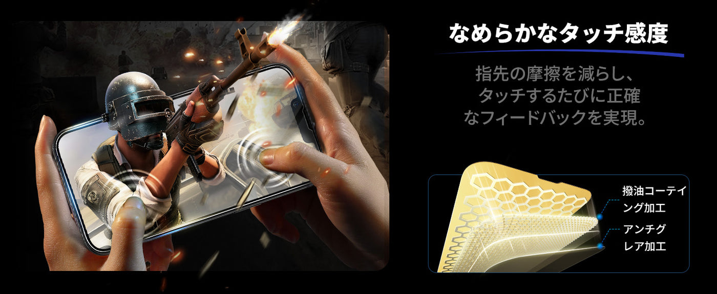 - Smooth Touch & Fingerprint Prevention: This film is processed using a unique nano-etching technology, resulting in a smoother texture than standard tempered glass, providing the ultimate smooth touch. It's also recommended for gaming enthusiasts. The water- and oil-repellent AF (Anti-Fingerprint) coating and smooth touch finish make fingerprints less noticeable, and even oily and moist stains and fingerprints can be easily wiped away.