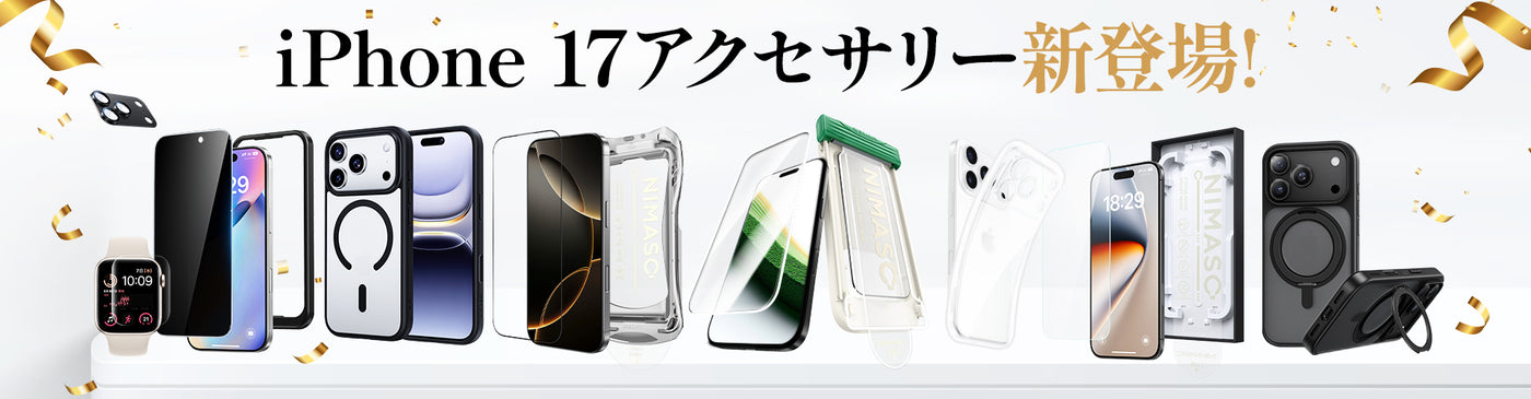 タイトル | NIMASO iPhone 17/Pro/Pro Max/Air用 強化ガラスフィルム 耐衝撃 ガイド枠付き【2枚】 | NIMASO iPhone 17/Pro/Pro Max/Air用 スライドローラー式 強化ガラスフィルム 3D曲面エッジ加工 全面保護 黒縁あり 指紋防止 ガイド枠付き【1枚】 | NIMASO iPhone 17/Pro/Pro Max/Air用 ブルーライトカット 強化ガラスフィルム 目の疲れ軽減 自動除塵ガイド枠 【2枚】 | NIMASO iPhone 17/Pro/Pro Max/Air用 アンチグレア ガラスフィルム 反射防止 自動除塵ガイド枠付き 【2枚】 | NIMASO iPhone 17/Pro/Pro Max/Air用 2in1 アンチグレア+覗き見防止 強化ガラスフィルム 耐衝撃 ガイド枠付き 【1枚】 |