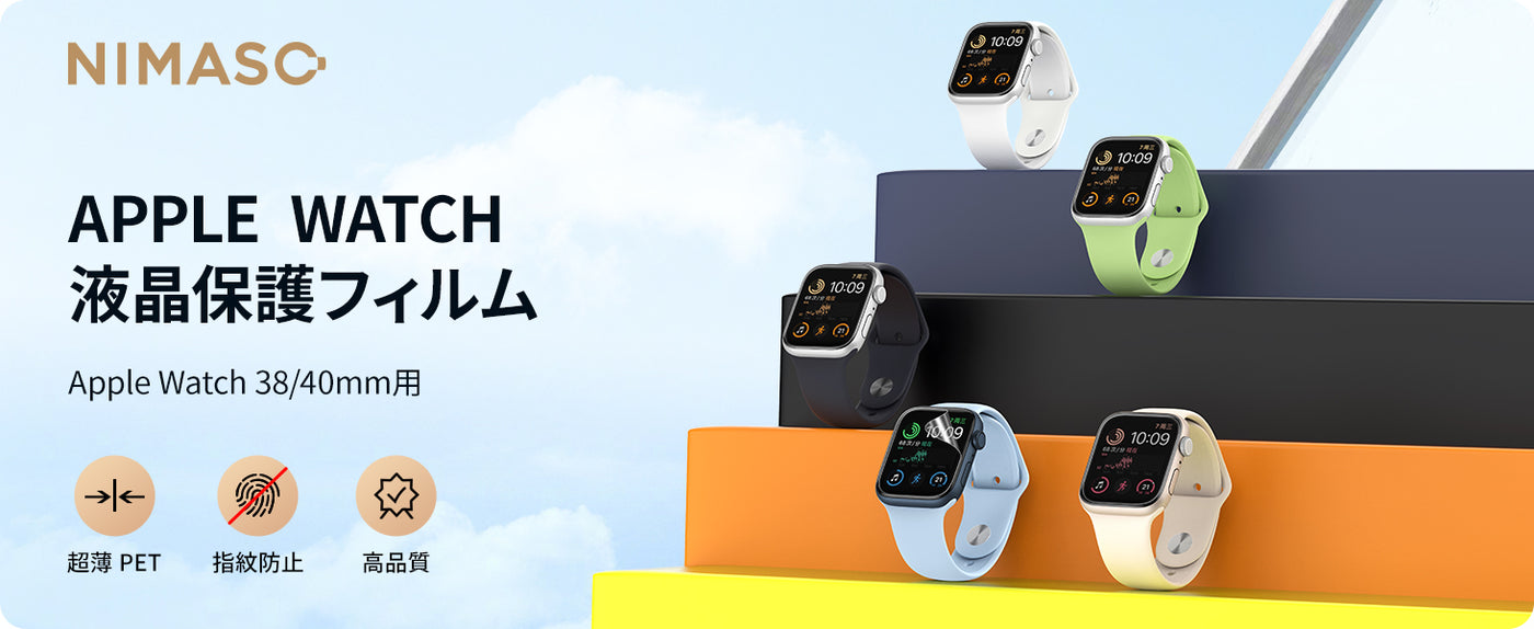 NIMASO Apple Watch series 6/5/4/3/SE対応 (38mm/40mm)用フィルム 【3/6枚入り】