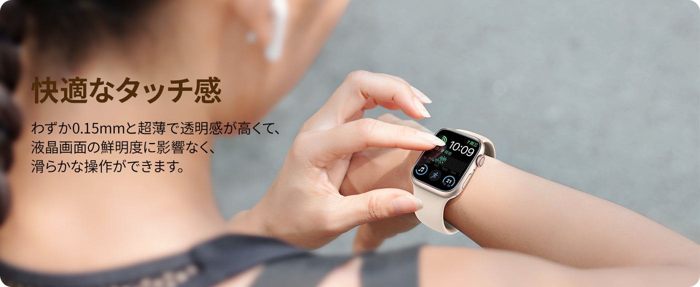 ★高透過率&高感度タッチ:高透過率を持つ極薄TPU素材製、フィルムの装着感はゼロで、高い透明感Apple Watch画面の精細さを保ちます。高い品質なTPUで優れたタッチ感を実現します。