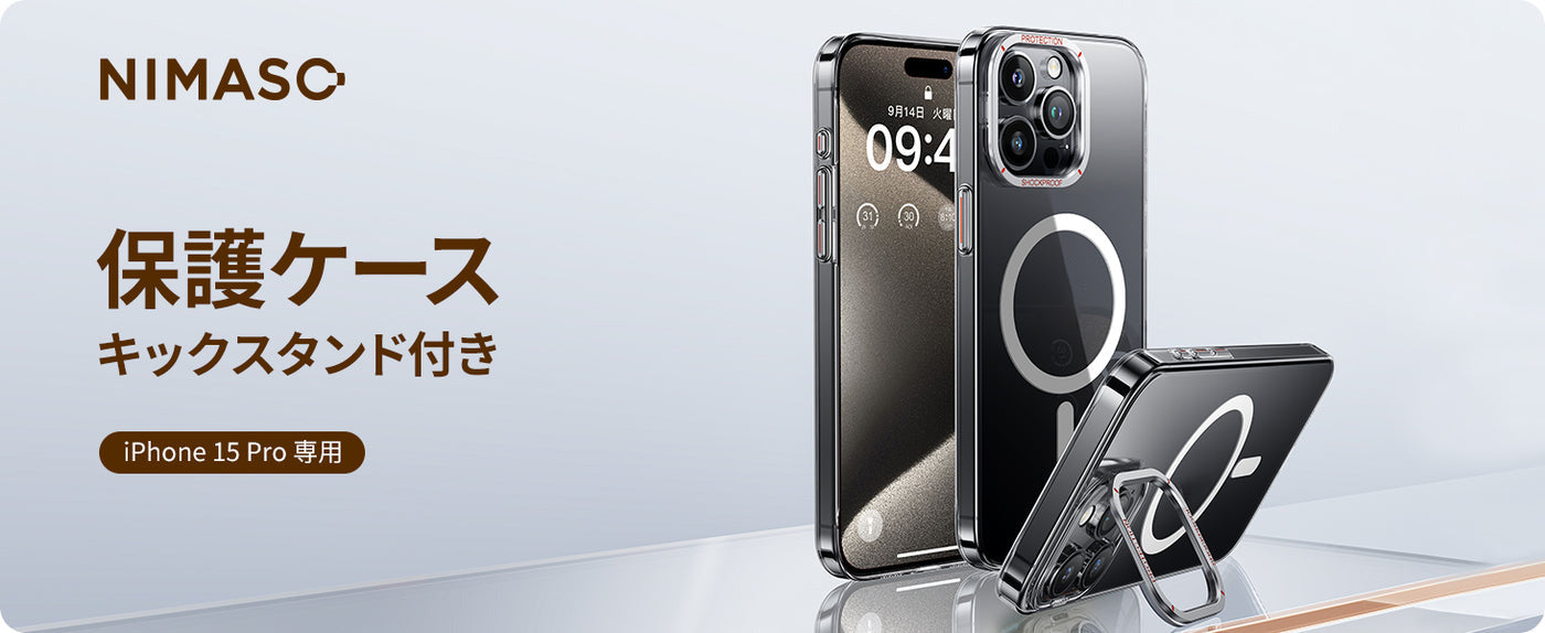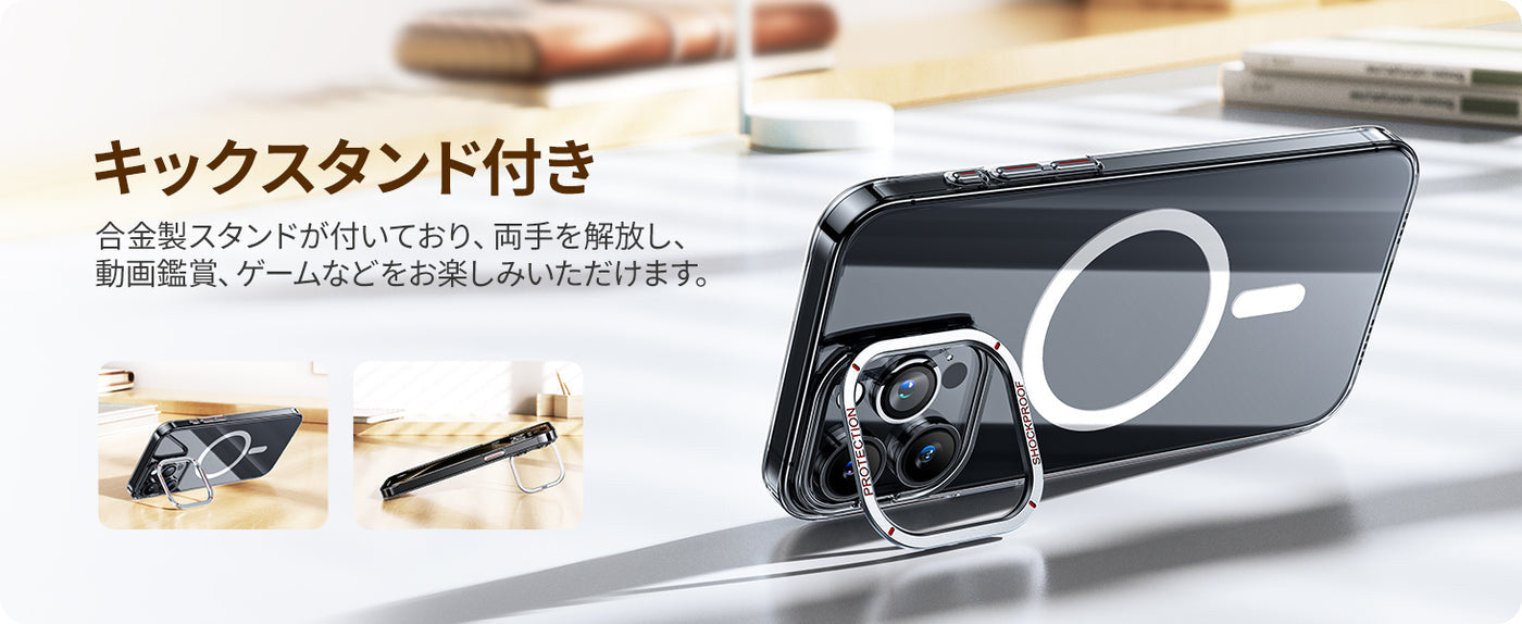 NIMASO iPhone 15 Pro/Pro Max用 MagSafe対応 ケース レンズスタンド付き角度調整可能 クリア スマホケース