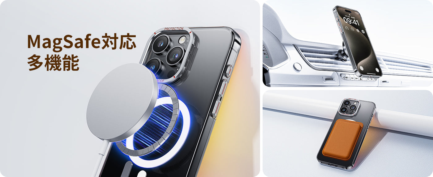 • 【MagSafe対応・強力な磁力吸着】スマホケース内部に38個の強力なN52マグネットを搭載しており、一瞬でピッタリと高速充電を実現!いくら振っても落ちないので、充電しながらゲームをやっても問題なし!また、ワイヤレス充電やモバイルバッテリー?車載ホルダー?スタンド?リングなど全てのMagSafeアクセサリーにもばっちり対応しています。