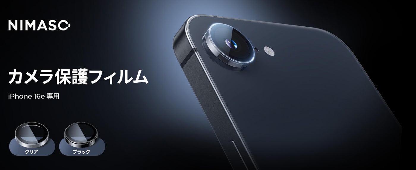 NIMASO iPhone 16e カメラフィルム 耐衝撃 高透過率 アルミ合金リング【2枚】