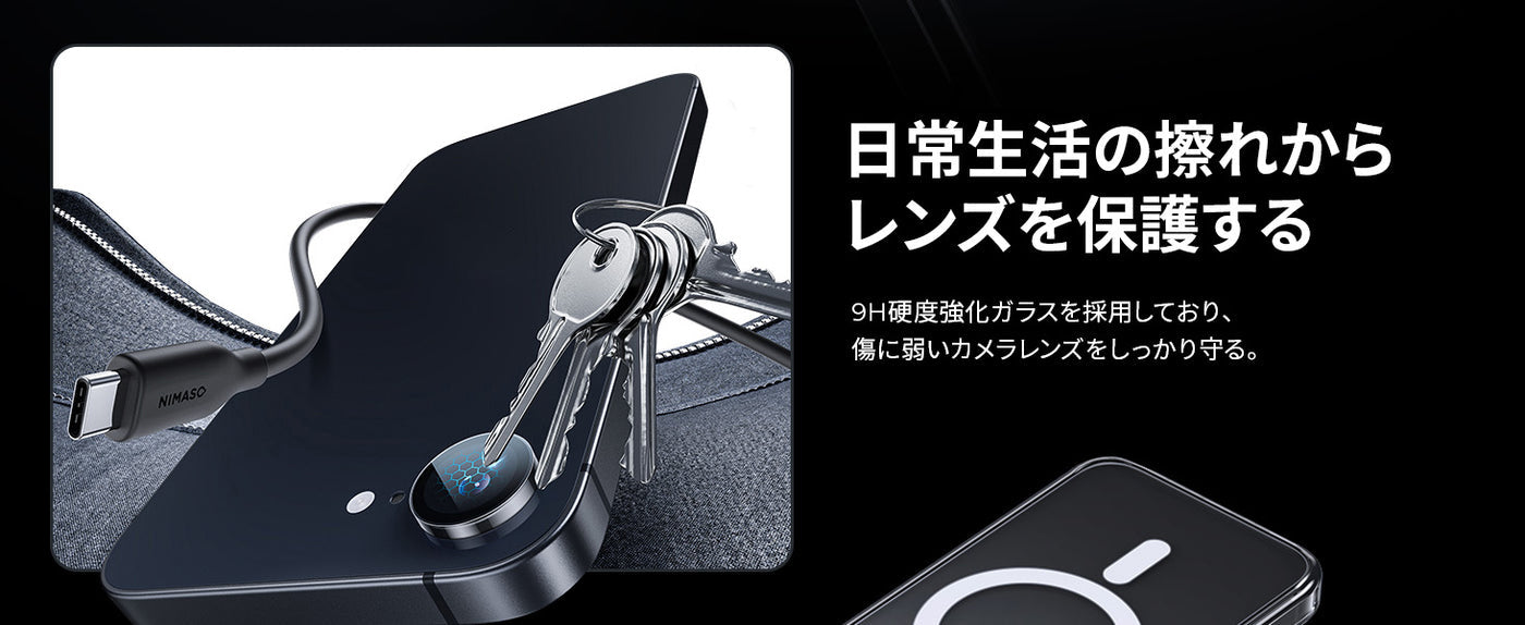 • 【カメラレンズをしっかり守る】9Hの高硬度強化ガラスを使用しており、鍵などの硬く尖ったものでも簡単には傷がつきません。0.1mm防爆コーティングを採用して、耐衝撃性と耐久性がアップし、もっとカメラレンズをしっかり守り抜く。また、飛散防止設計により、万が一割れてしまっても、破片が飛散せず安全性が高い保護フィルムです。本製品の縁取り部分は、アルミ合金素材を採用し、さらに保護力をアップしました!