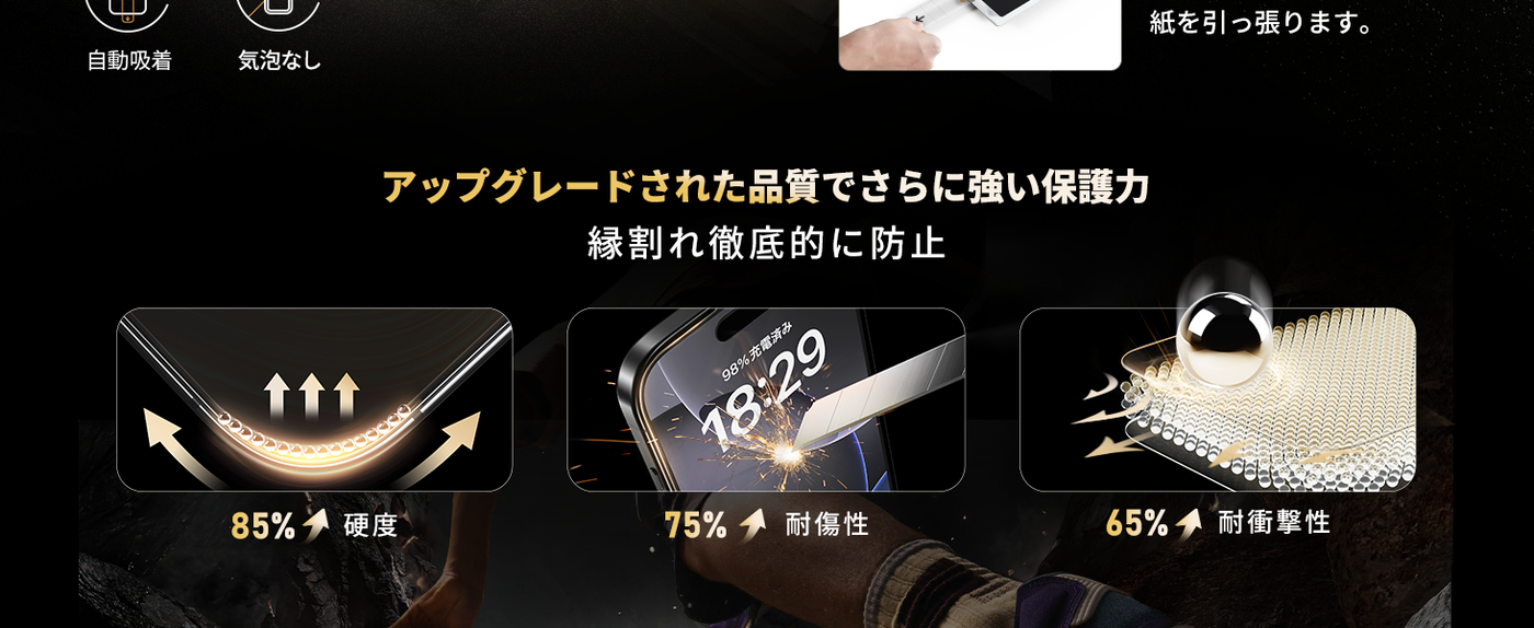 - 【防塵ネット装置・黒縁全面保護・耐衝撃UP】米軍規格【MIL-STD-810H】に準拠(認証番号:SZXEC23002005001)・業界最高硬度9Hの素材を採用しています。耐摩耗性テストに耐え、鍵などの鋭いものにぶつかっても傷が付きにくいです。黒縁取りでアイフォン16プロマックスの画面をしっかり保護します。スピーカー、マイクの開口部の防塵ネットが、クリアな音質の実現と防塵の役割を果たしています。