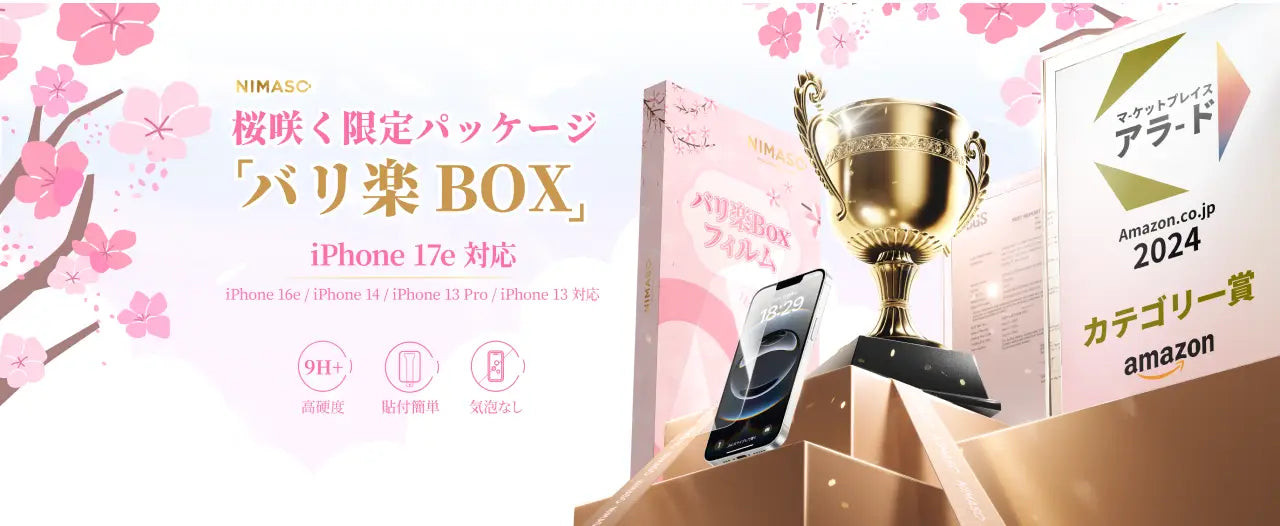 【樱花限定版】NIMASO iPhone 16e/14/13 Pro/13 钢化玻璃膜升级版【附导光框Bari-Raku礼盒】【2片装】