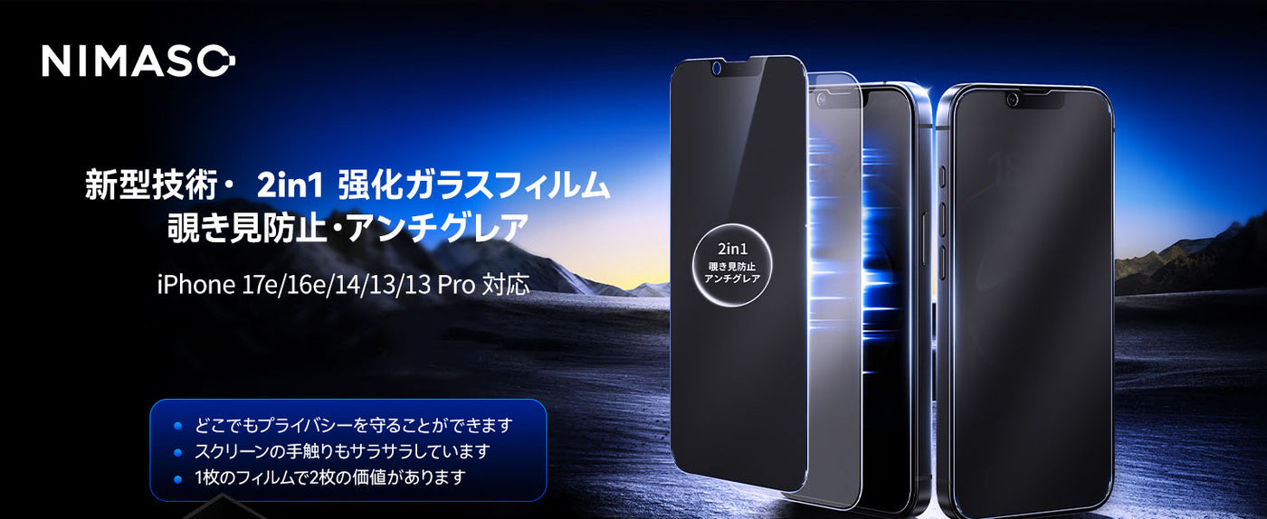 NIMASO iPhone 16e/14/13 Pro/13 二合一防眩光 + 隐私钢化玻璃屏幕保护膜,带“Bari-Raku Box”导框(1 个屏幕) - iPhone 17e/16e/14/13/13 Pro ...处于缺货状态,一到货就会发货。